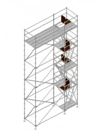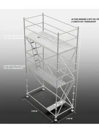 Torre de 3 módulos para trabajos a una altura maxima de 8 metros con un área de trabajo de 1.40 x 1.40 sobre placas.